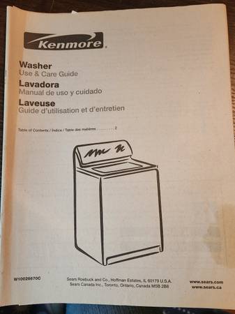 UPDATE: 1/10 --- The Washing Machine has been taken! Kenmore W10026670C Purchased new from Sears 12/9/2009 Comes with the Washing Machine and original User Manual Motor needs to be replaced or it...
