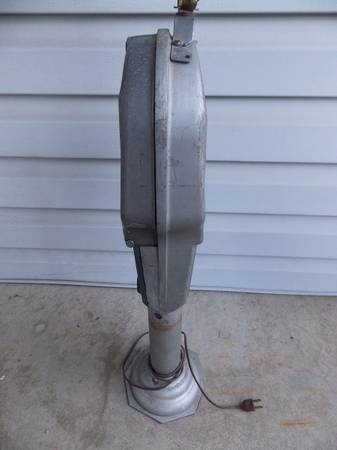 The total height is 34 inches. The base is 7 inches in diameter. It has some minor wear. It is in good working condition. and free of any breaks.