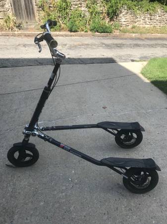 Trike12 carving 3 wheeled scooter with separate brakes for rear wheels and adjustable riser for Handlebar