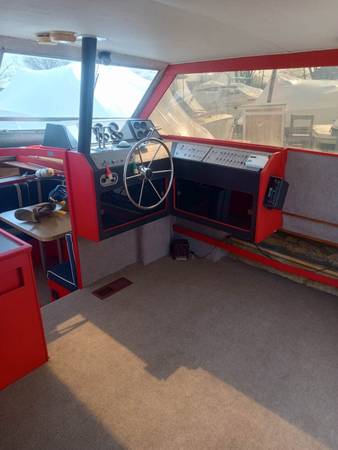 32 foot 1977 pacemaker with fly bridge twin 350 v-8 inboard carbureted 4 barrel engines runs strong, transmission rear main seals were replaced on both transmissions, starborb side Cutlass bearing replaced navigation lights work blower works interior lights work, I have 2 15 foot outriggers going with the boat all four stance and a full complete mooring 50 ft chain 500 lb also going with the boat one big bundle but was in the water last Summer ran great, working bilge pumps. Located at Pennsylvania yacht club State road Bensalem PA, good strong boat I am asking $5000 firm please contact me I'm in Northeast Philadelphia PA. show contact info