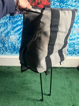 Mash front rack in black with grey waxed canvas inside line equipment rack bag. Will hold roughly 25lbs, bag can be converted into a tote. Bag is weather resistant. Comes with extra head to mount to...