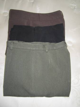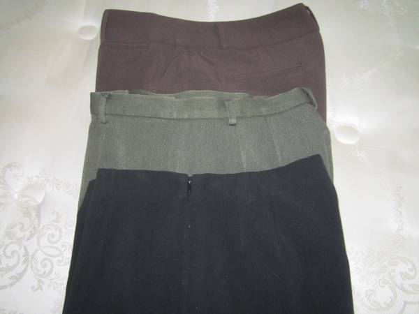 3 fall-weight pair of slacks . All are Size 10 -- Geoffrey Beene -Black - zipper on side; Rafaella -- olive green - front zipper; Zac & Rachel -- burgundy/brown.