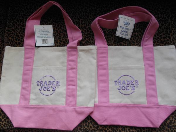 For Sale: Trader Joe's Mini Totes. The hot fashion item, in the hottest color, pink. Great Valentine's Day gift...ask her, she'll tell you. Brand new with tags. Sold as a pair for $25 cash. Meet in...