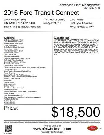 2016 FORD TRANSIT CONNECT CARGO MINIVAN - stk# 2649