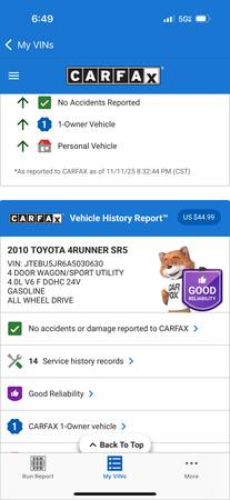 This is a 2010 Toyota 4Runner SR5 AWD. It has 137,000 miles on it . ONE OWNER. Clean CARFAX. Clean Title. Regularly serviced. Oil service is up to date. It has all brand new tires. It has keyless entry. Push start. AC and Heat works perfect . Rear air conditioning. Traction control. Stability control. Power steering. Cruise control. Hill start Assist control. Anti theft system. CD. MP3. Sirius XM Satellite . AUX. Premium Alloy wheels. Dual airbags. Side airbags. Front and rear head curtain airbags. Carpet floor mats. Extremely reliable. Extremely clean in and out as you can see in pictures.