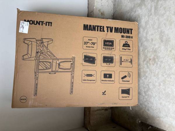 Mount-it motorized TV wall mount for hanging Large TV for over fireplace. Remote powered to lower tv to a desired height. Can handle up to 77 pounds and TV's up to 70 inches.