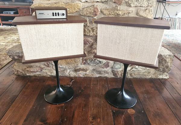 Beautiful pair of vintage BOSE 901 speakers with pedestals and equalizer.