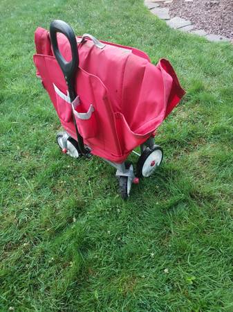 It has seatbelts for kids or use around the garden. It rolls nice and folds up and collapses to take up less space when you store it.