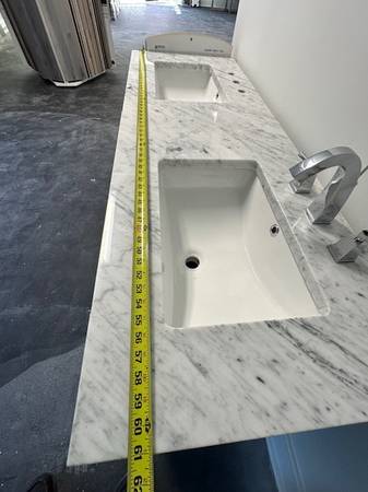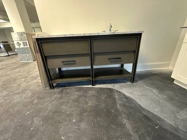 DOUBLE VANITY FOR SALE WITH TOP! MAKE OFFER! *HAS SOME SCRATCHES AND DOORS NEED ADJUSTMENT! THIS WAS A DISPLAY PIECE FOR A SHOWROOM*