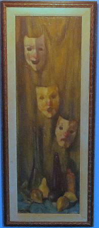 This is a Ca. 1960 Oil on Masonite by W. Cortland Butterfield (1904-1977) The colors, subject matter, modernist style and size all scream Mid Century Modern. It measures 51 1/2" x 21 1/2", framed in its original period frame. It is in very good condition, with NO visible issues.