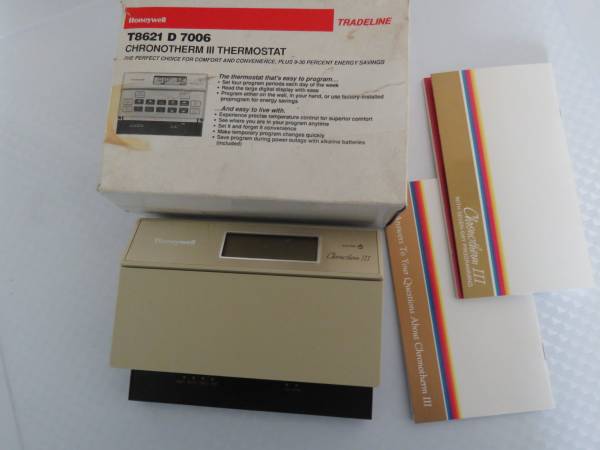Honeywell Chronotherm III Thermostat- In box with instructions. Set 4 program periods each day of the week. $20.