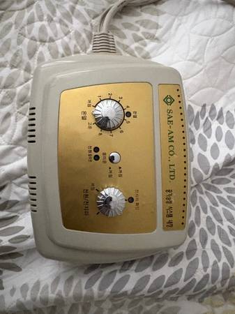 Fits a queen size mattress or can just use on floor. It’s very heavy because of the stones. Instructions on the controls is in Korean, but can provide instructions. Hardly used because we switched...