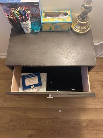 Used bedroom dresser set and mirror. I owned these for 5 years and am now moving so I am no longer in need of these. The mirror connects to the back of the largest dresser, however, I no longer have the pieces that connect them. The mirror can be a stand alone piece, but could also be remounted to the back of the dresser with 2x4s or another piece of framing lumber. The nightstand is in good condition and is light enough for one person to maneuver. The large dresser is very heavy and it required 4 people to move this in to my current home. We left it on the first floor of our home because of the weight.