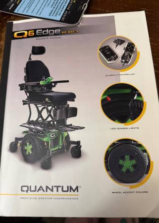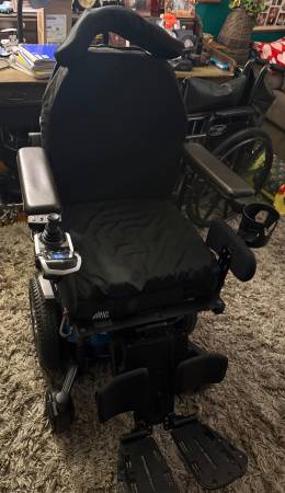 Great quality chair that works perfectly. Great indoors for maneuvering in small spaces and also street worthy if you want to drive around the neighborhood. Goes up to 16 miles on a single charge. Adjustable seat height, leg rests and headrest. Joystick can mount left or right. Reclining seat and contoured back rest. Detachable swing-away foot rests. It’s a very strong and reliable chair. Paid over $5000 for it. Battery is solid and holds a good charge. Ready to use!