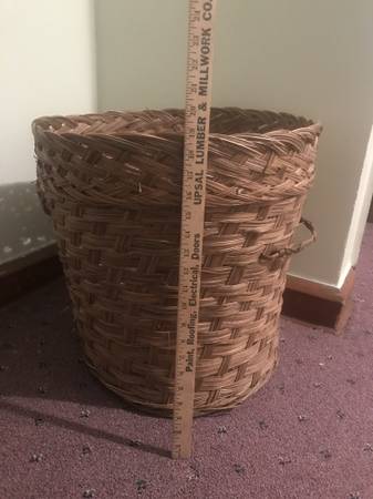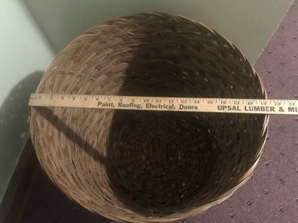 Large Round Wicker Basket with Lid & Handles 19' h 19" d VGC $20