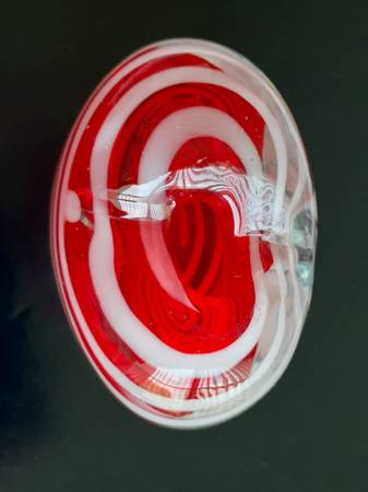 Red heart shaped vase w/opalescent spirals Perfect for one flower Height: 3-1/2" Serious & Interested, send an email with a phone number please Cash Only