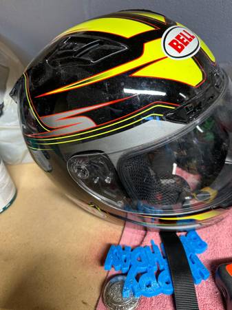 used bell helmet scratched up but still in usable shape asking 30.00 . Ls2 helmet brand new never used has light scratches shown in pictures from being moved around in garage 60.00. Thanks for...