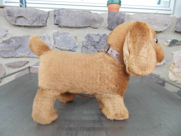 It measures 8 1/2 inches long x 6 inches tall x 3 inches wide. It has very little wear. It is very clean. It takes 2 D batteries. When the button is pushed the eyes light up. Nothing else works. It...