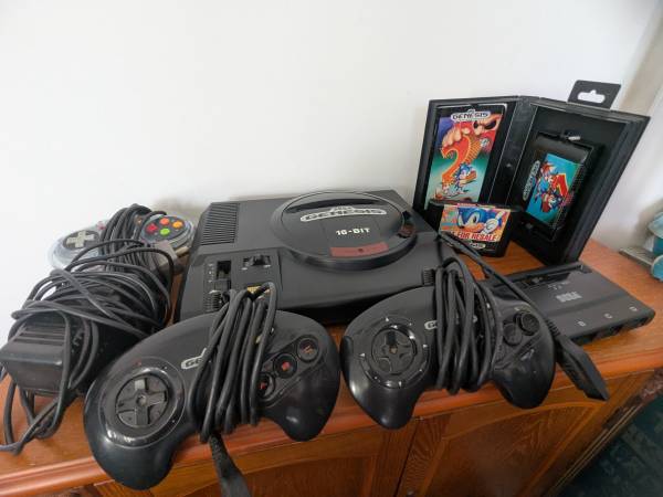16 Bit Sega Genesis with 3 controllers, MultiTap, Sonic 1&2 , Original power supply and RF cable - $140